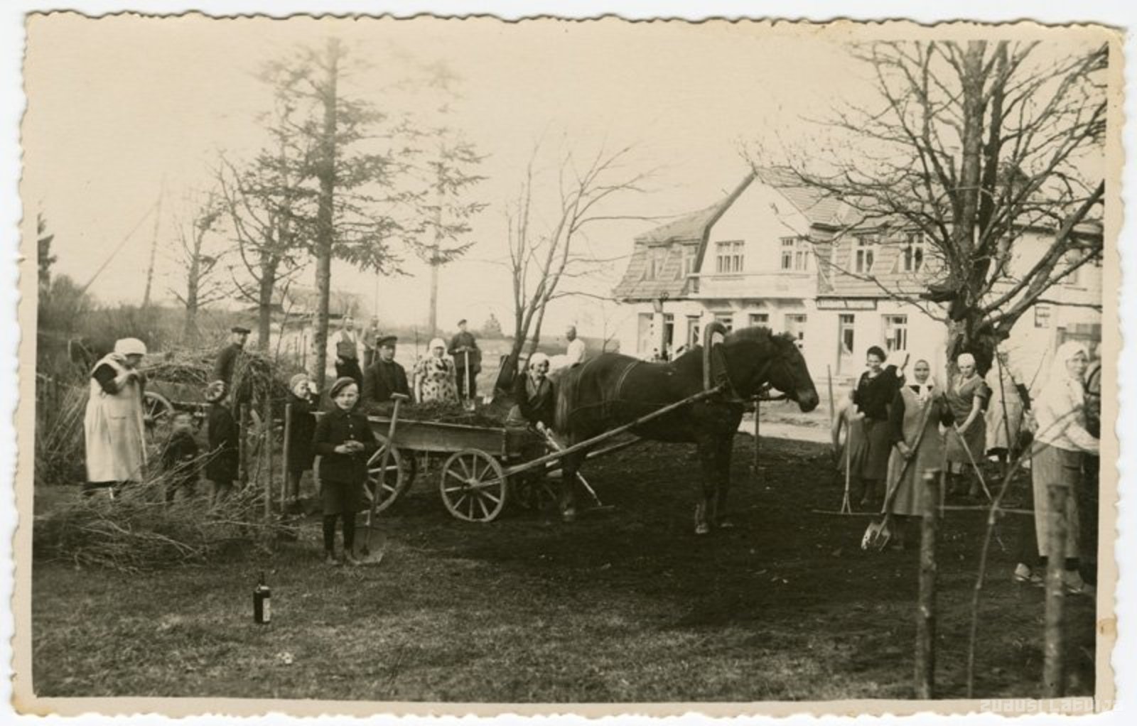 Skrunda. Koku stādīšana pie Skrundas baznīcas