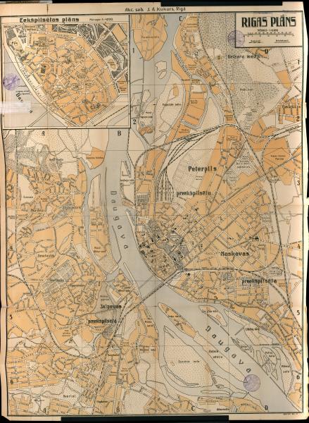 Vadons pa Rīgu ar Rīgas vēsturi, ievērojamākām vietām, valsts un komunāliestāžu sarakstiem un Rīgas plānu - [1921] (Grāmata)