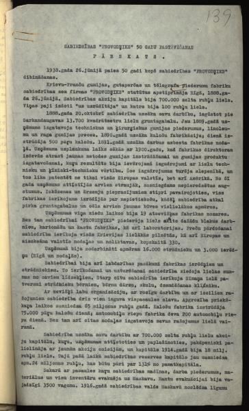 Fonds: Krievu - franču gumijas, gutaperčas un telegrāfa piederumu fabriku sabiedrība "Provodņiks". Lieta: Krievu - franču gumijas, gutaperčas un telegrāfa piederumu fabriku sabiedrība "Provodņiks" darbības pārskati un bilances