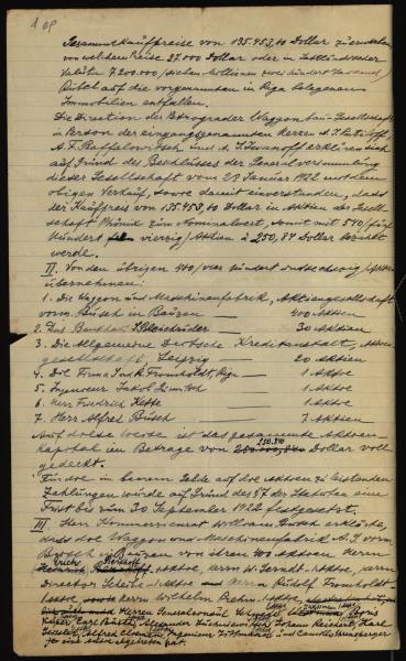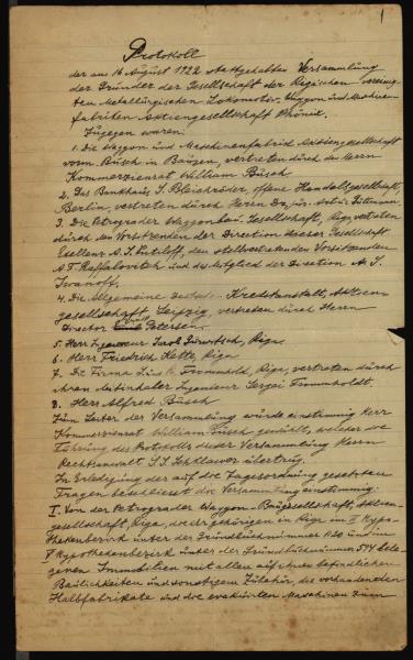 Fonds: Rīgas savienoto metalurģijas, lokomotīvju, vagonu un mašīnu fabriku akciju sabiedrība "Fēnikss". Lieta: Akciju sabiedrības “Fēnikss” dibinātāju sapulce