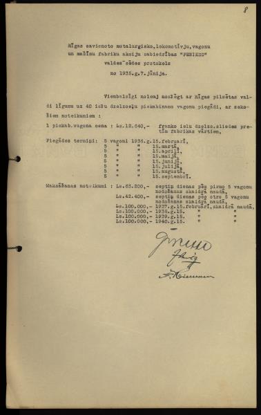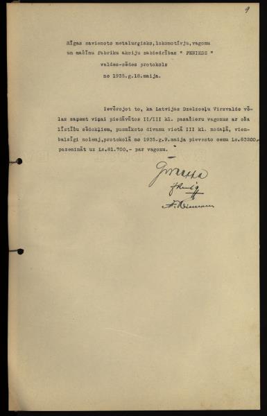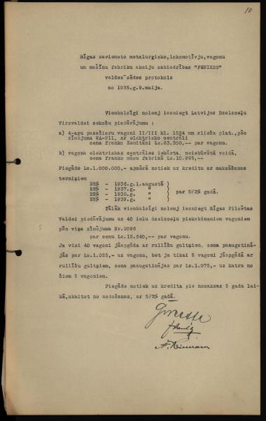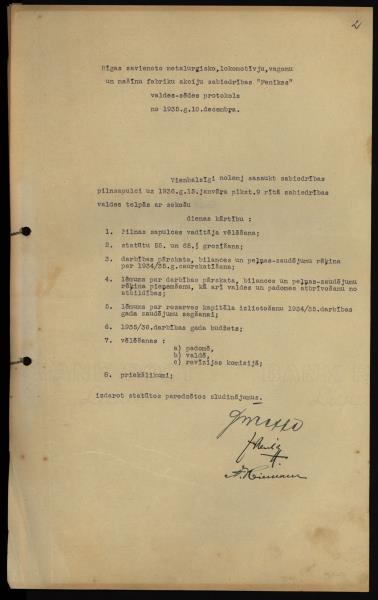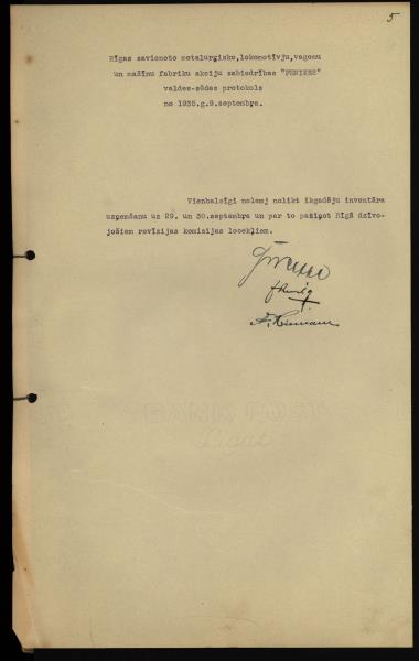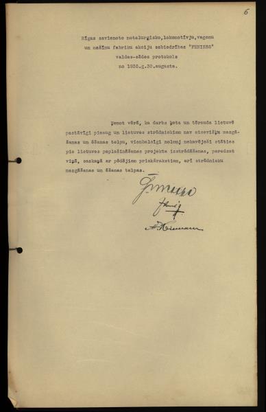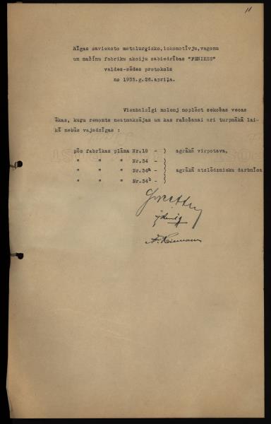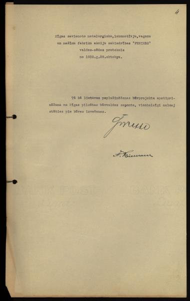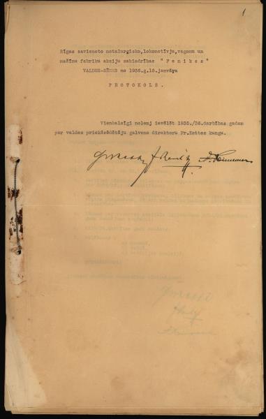 Fonds: Rīgas savienoto metalurģijas, lokomotīvju, vagonu un mašīnu fabriku akciju sabiedrība "Fēnikss". Lieta: Akciju sabiedrības “Fēnikss” valdes sēžu protokoli
