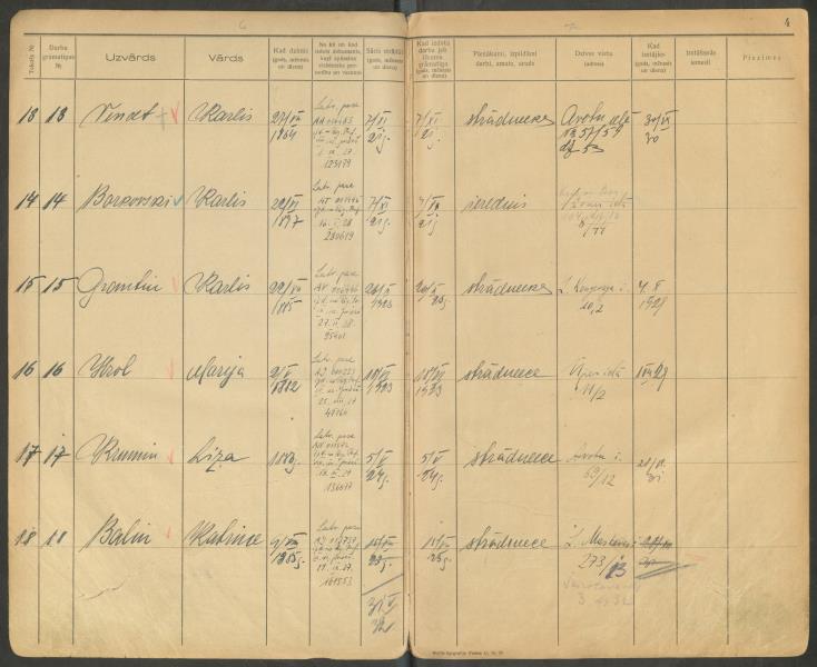 Kažokādu apstrādes un krāsošanas A/S fabrikas "Elektra" strādnieku un kalpotāju saraksta fragments