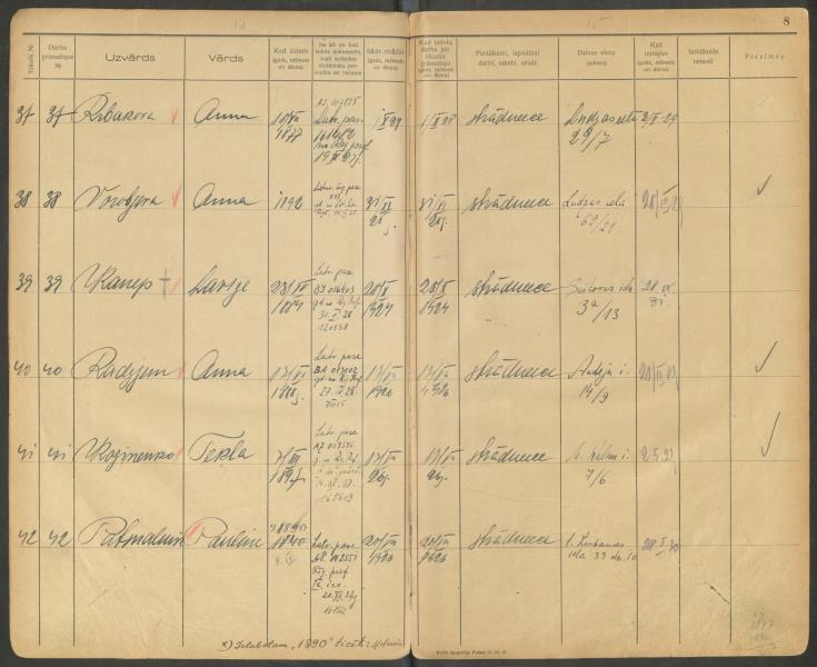Fonds: Uzņēmumu personālsastāva dokumenti. Lieta: Kažokādu apstrādes un krāsošanas A/S fabrikas "Elektra" strādnieku un kalpotāju saraksts