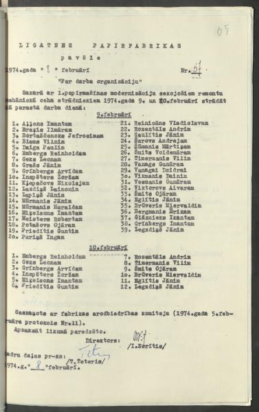Fonds: Valsts akciju sabiedrība "Līgatnes papīrfabrika". Lieta: Pavēles par personālsastāvu un vispārējo saturu