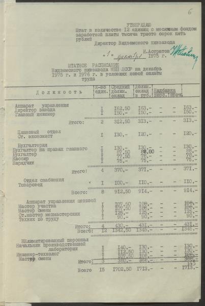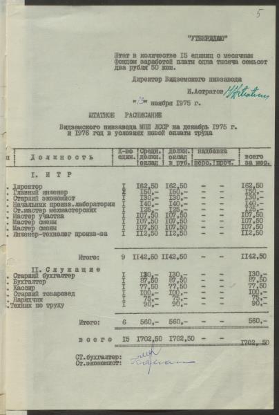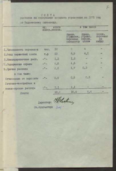 Fonds: Vidzemes alus rūpnīca. Gulbene. Lieta: Vidzemes alus rūpnīcas štatu saraksti un administratīvi-saimniecisko izdevumu tāmes