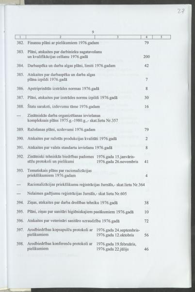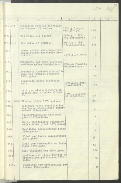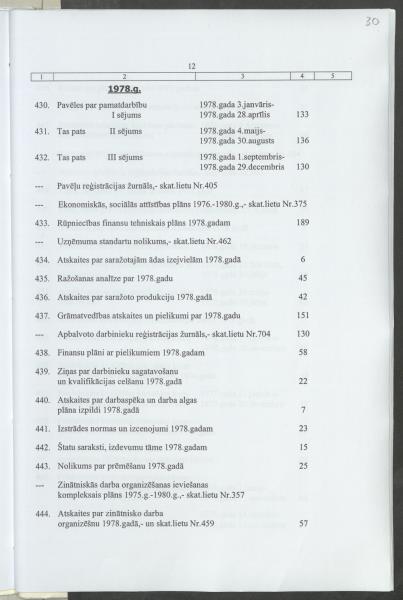 Pavēles par pamatdarbību, plāni, ražošanas analize, grāmatvedība, arodbiedrība u.c.