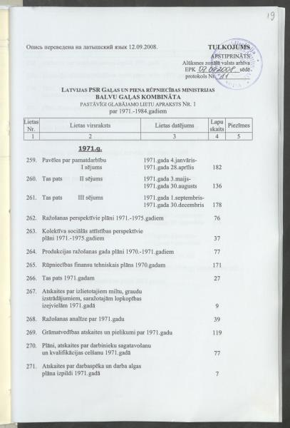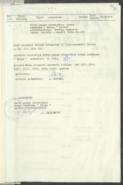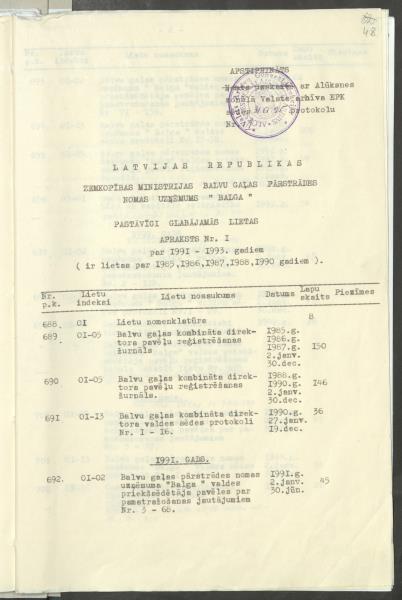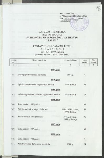 Fonds: "Balga", sabiedrība ar ierobežotu atbildību. Balvu rajons. Lieta: Pavēles par pamatdarbību, plāni, ražošanas analize, grāmatvedība, arodbiedrība u.c.