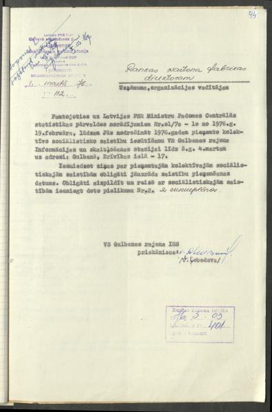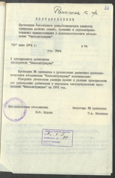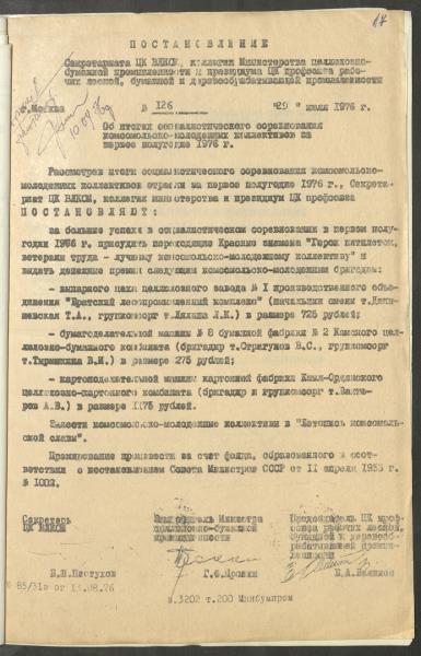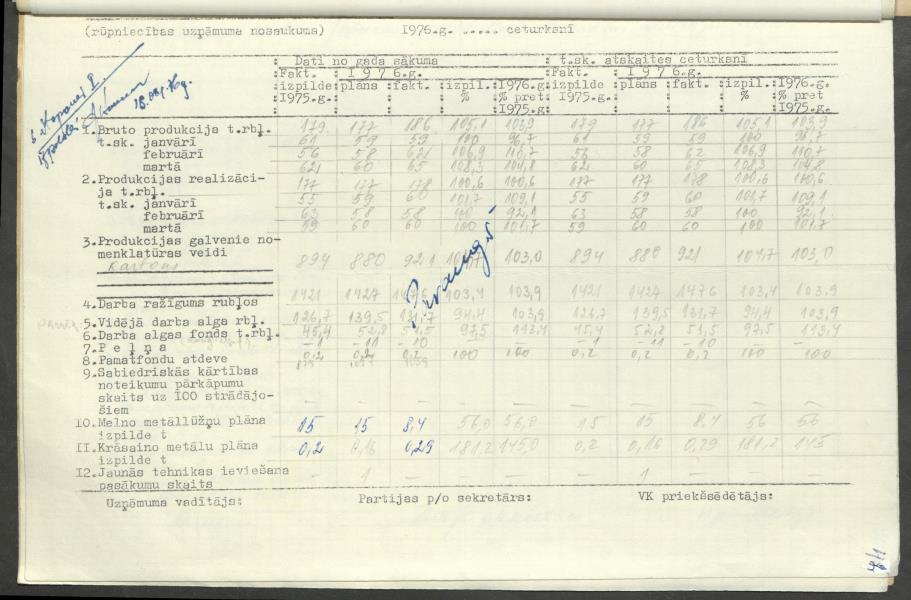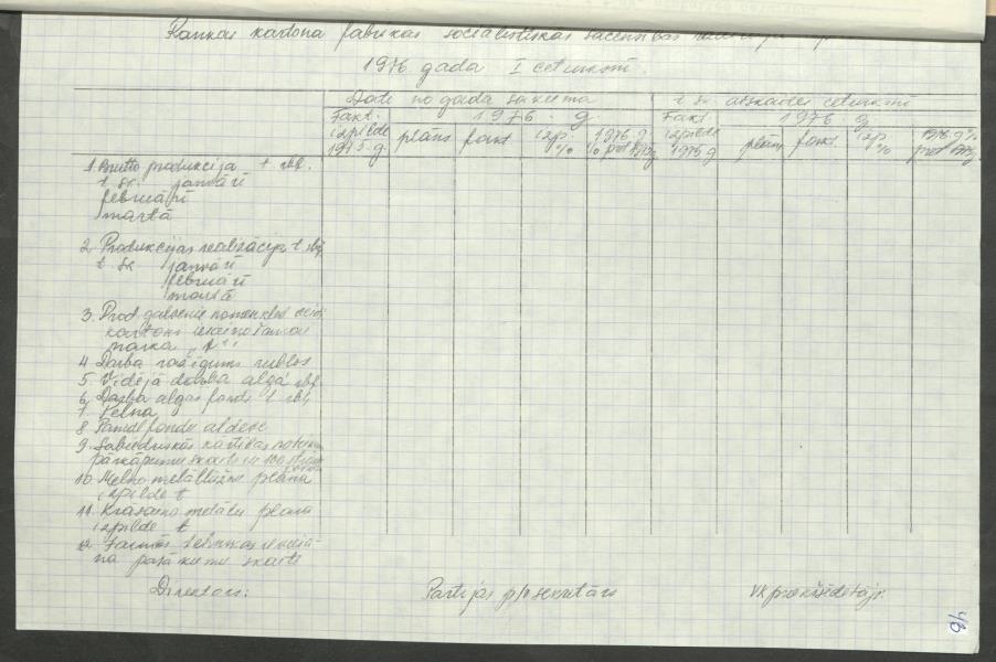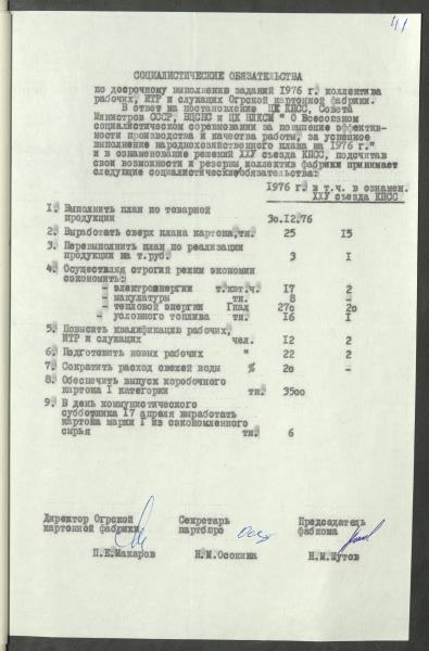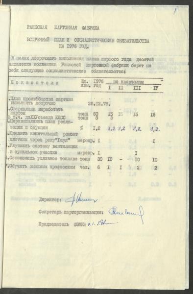 Fonds: Rankas kartona fabrika. Lieta: Rankas kartona fabrikas materiāli (saistības, pārbaudes akti, rādītāji) par socialistisko sacensību 1976.gadā
