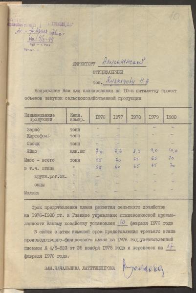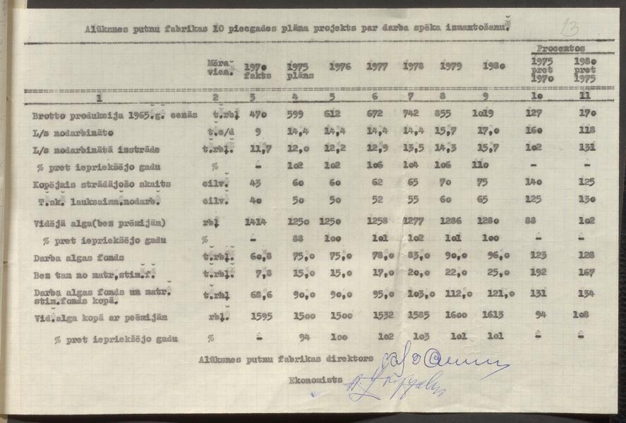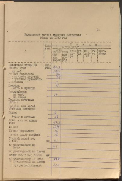 Fonds: "Alūksnes putni", paju sabiedrība. Lieta: Alūksnes putnu fabrikas putnkopības attīstības rādītāji 1975.-1980.gadam