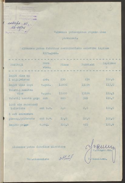 Alūksnes putnu fabrikas sociālistisko saistību izpilde 1979.gadā