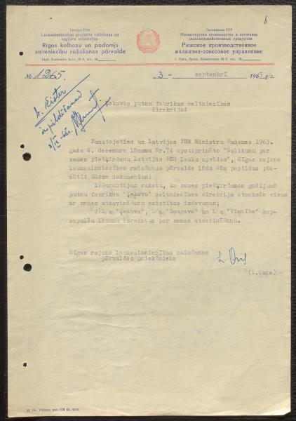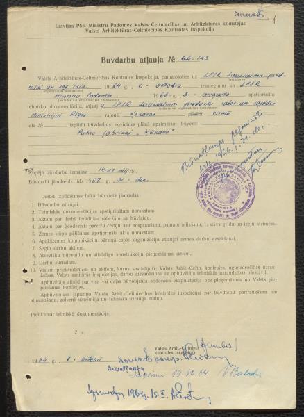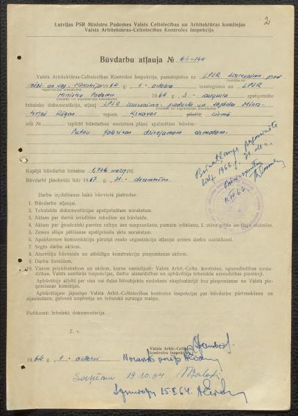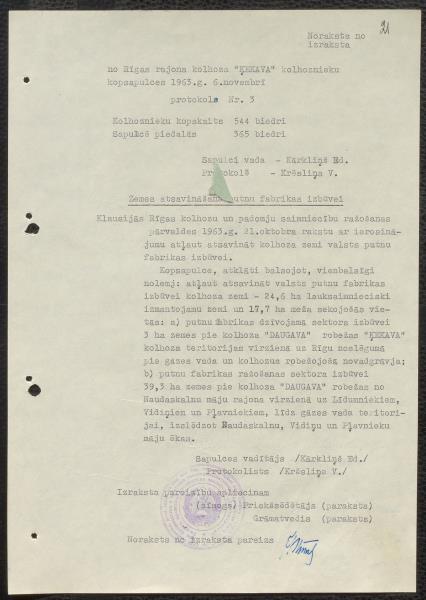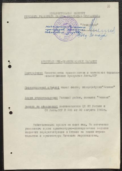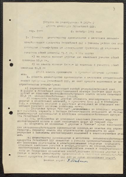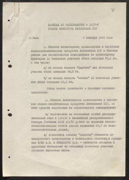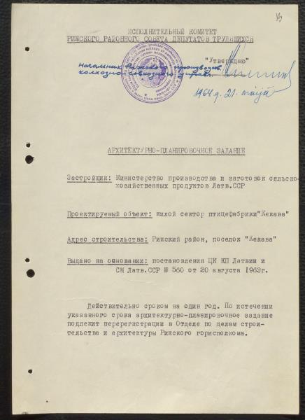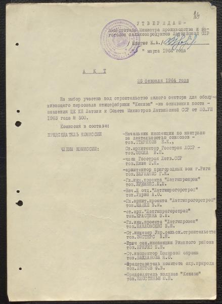 Fonds: Valsts saimniecība Putnu paraugfabrika "Ķekava". Lieta: Akti par zemes atsavināšanu priekš putnu fabrikas un būvdarbu atļaujas