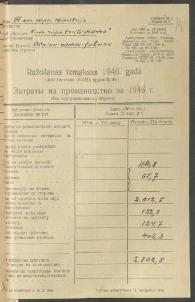 Fonds: Valsts akciju sabiedrība "OLAINES KŪDRA". Lieta: Gada pārkats par 1946. gadu