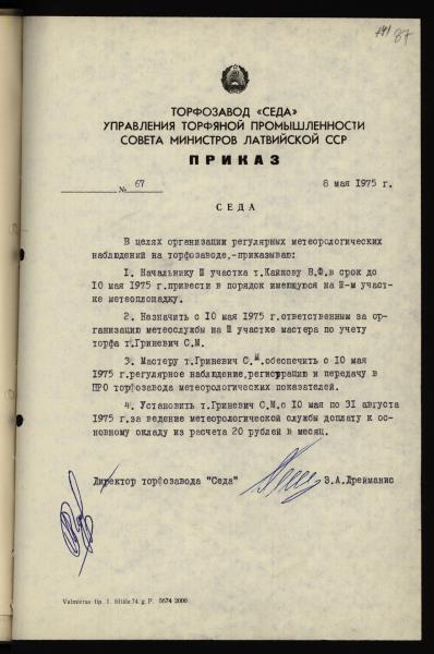 Fonds: Valsts Sedas kūdras fabrika. Lieta: Pavēles ražošanas jautājumos Nr.50-89a