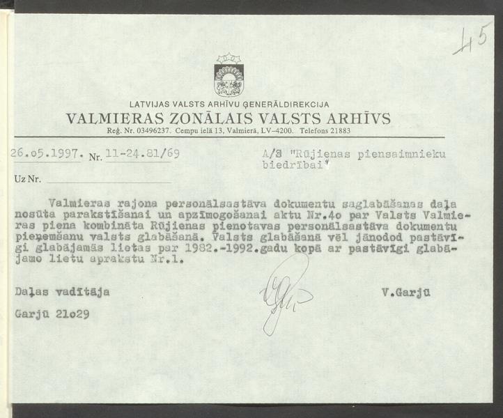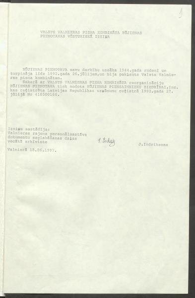 Fonds: Rūjienas pienotava. Lieta: Fonda vēsturiskā izziņa