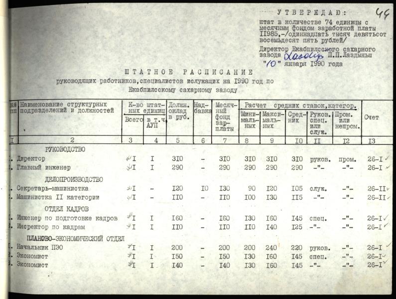 Fonds: Jēkabpils cukurfabrika. Lieta: Štatu sarakstu izmaiņas