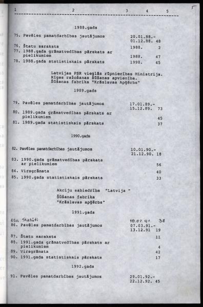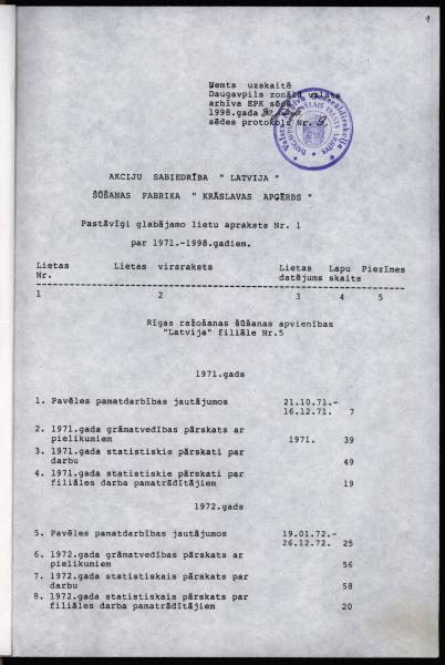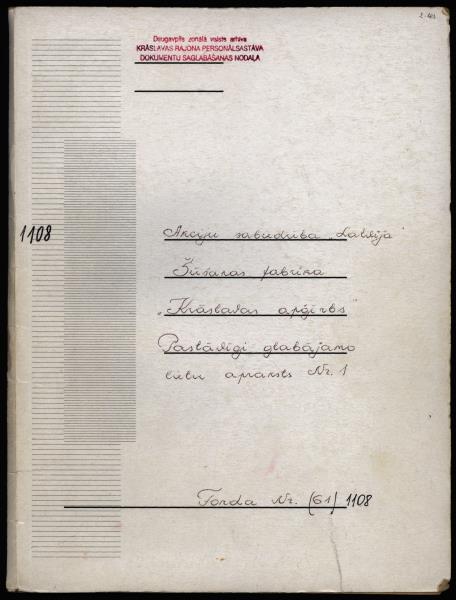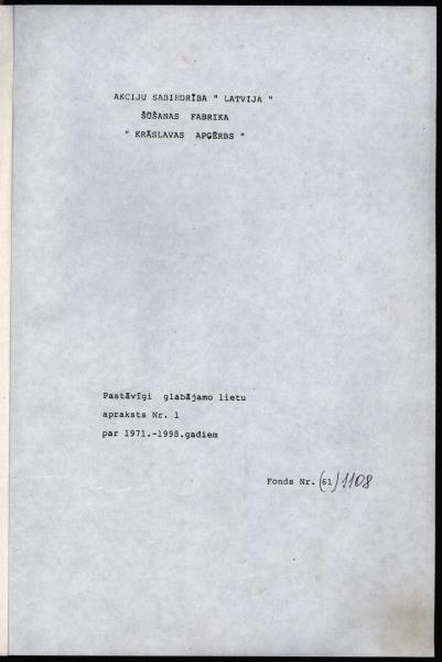 Fonds: Krāslavas apģērbs, akciju sabiedrības "Latvija" filiāle šūšanas fabrika. Lieta: Pavēles pamatdarbības jautājumos, statistiskie pārskati, grāmatvedības pārskati utt.