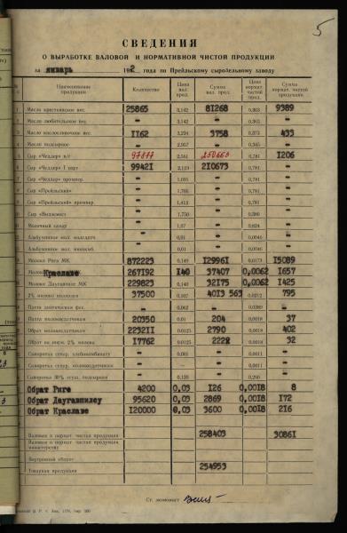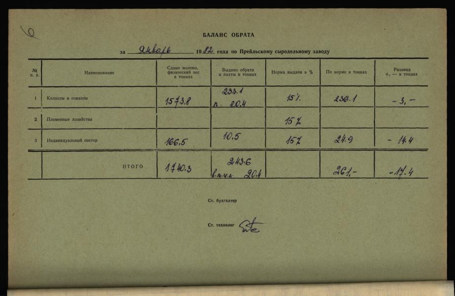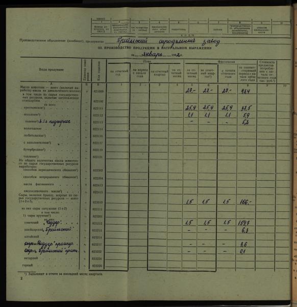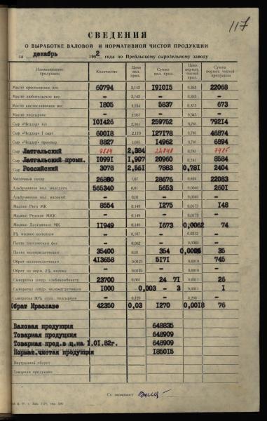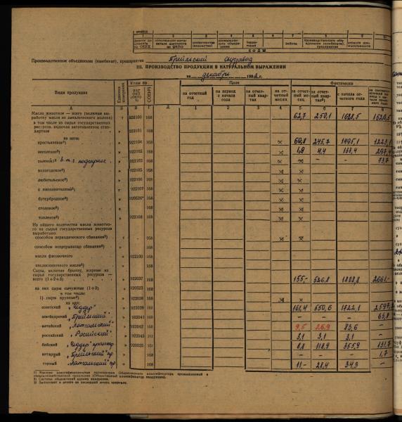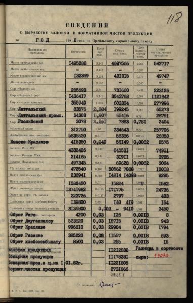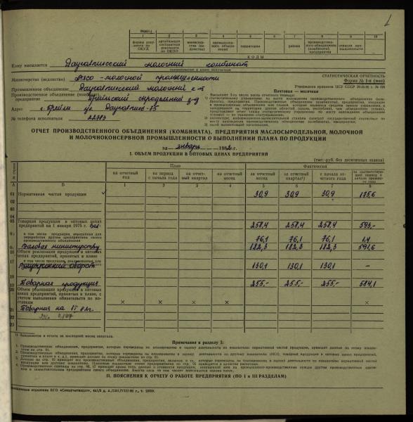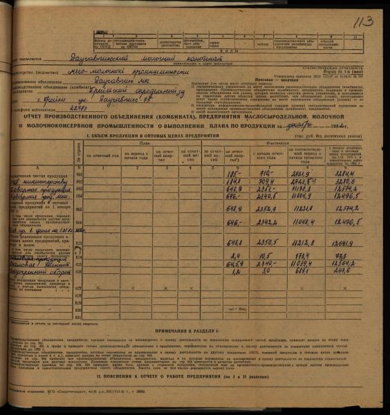 Fonds: "Preiļu siera rūpnīca", valsts uzņēmums. Lieta: Daugavpils piena kombināta Preiļu siera rūpnīcas statistiskās atskaites par produkcijas ražošanu, darbu un darba algu par 1982.gadu