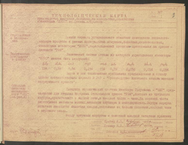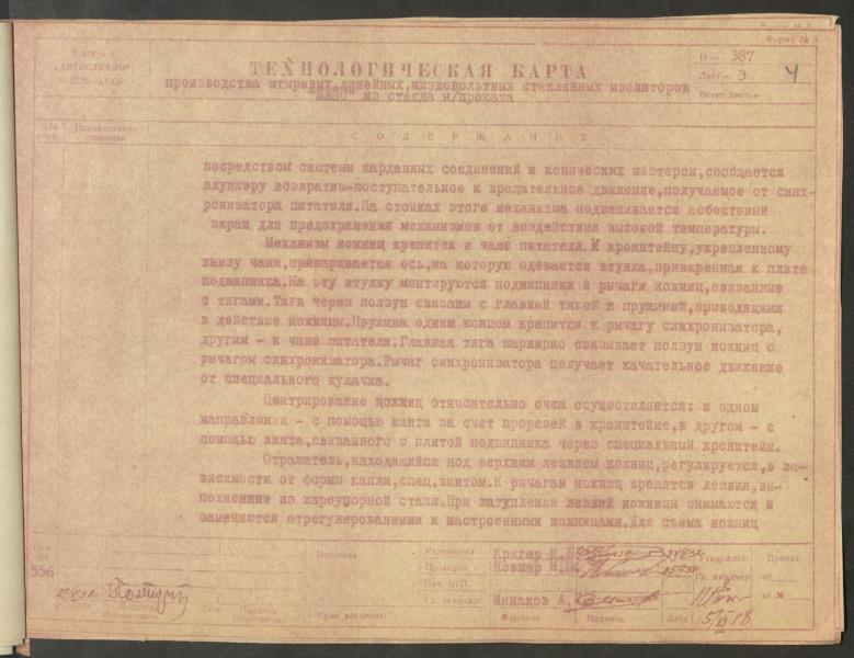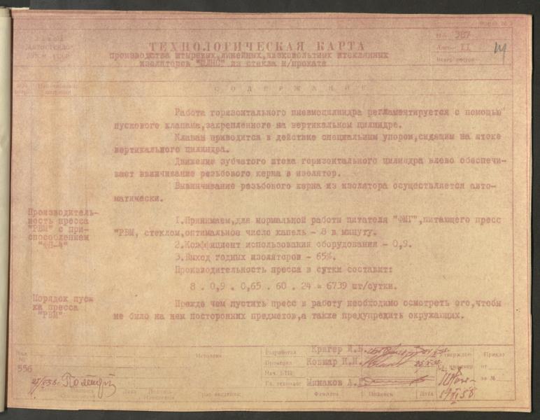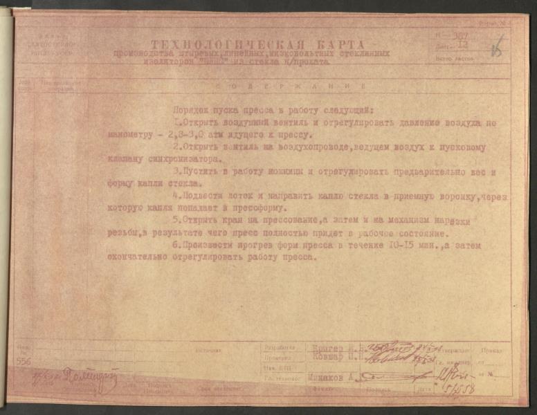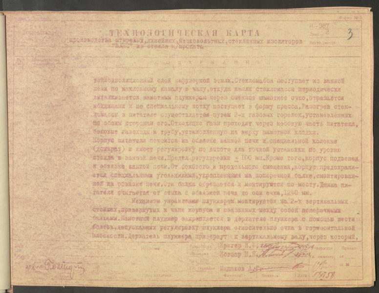 Fonds: "Līvānu stikls", akciju sabiedrība. Lieta: Līvānu stikla fabrikas stikla izolatoru ražošanas tehnoloģiskā procesa NORMĀLE