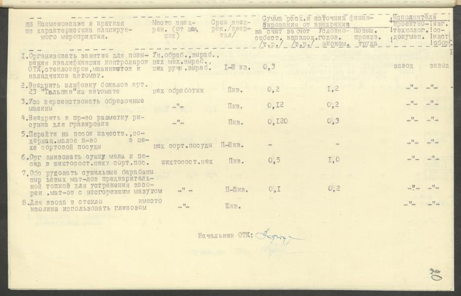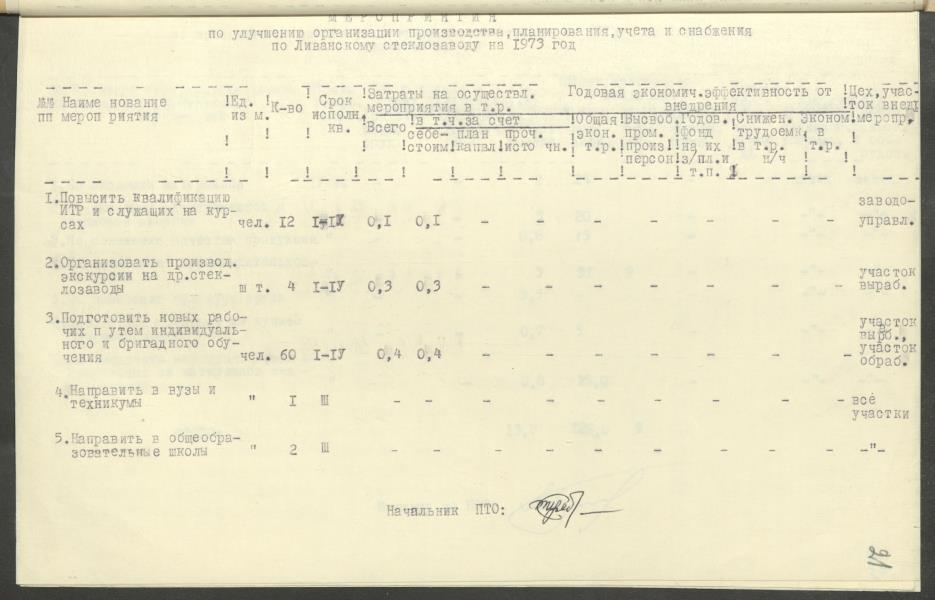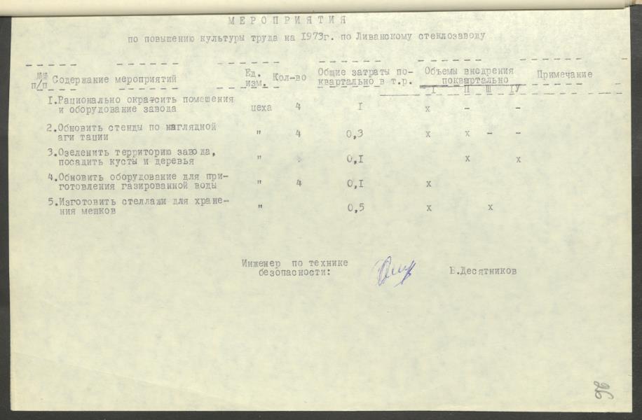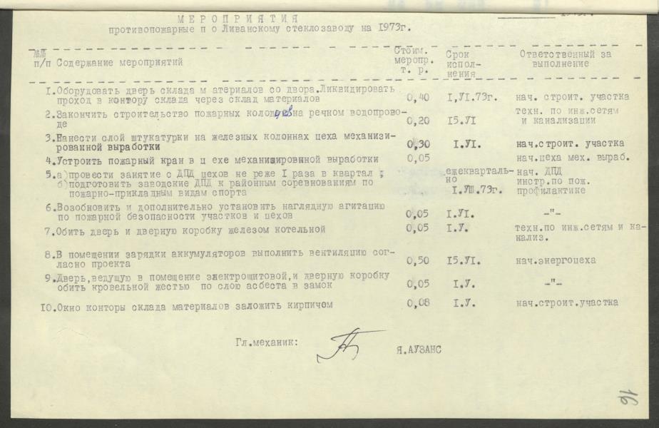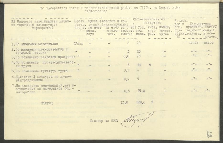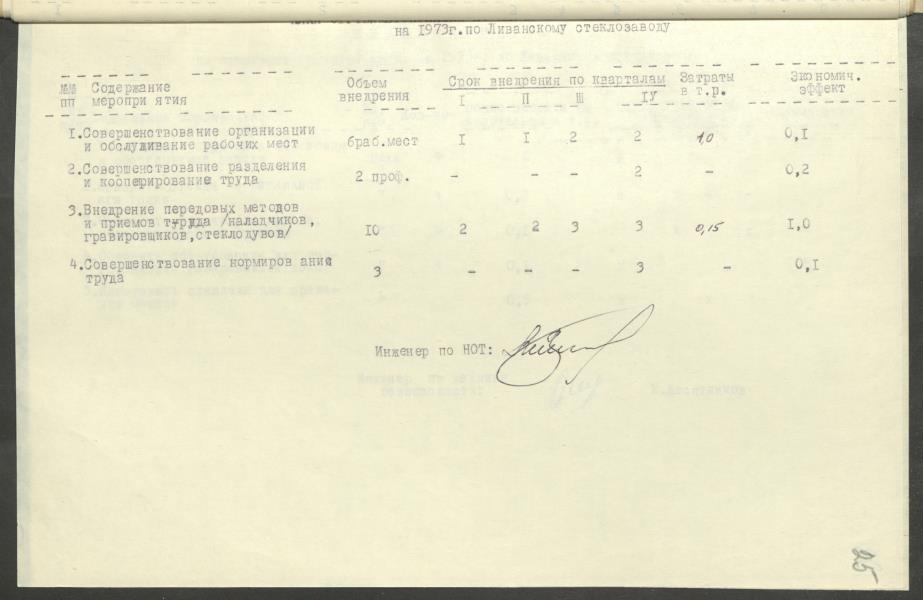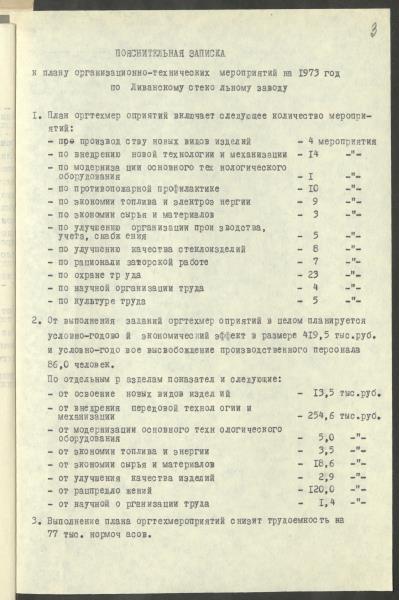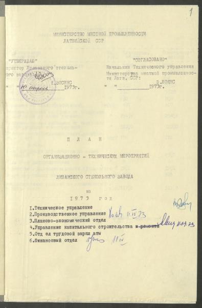 Līvānu stikla fabrikas organizatoriski-tehnisko pasākumu plāns 1973.gadam