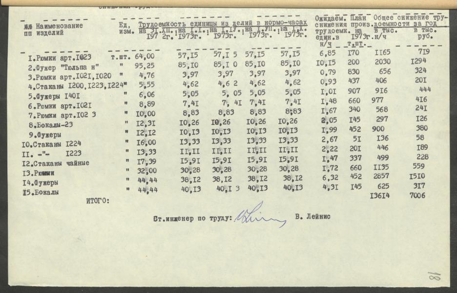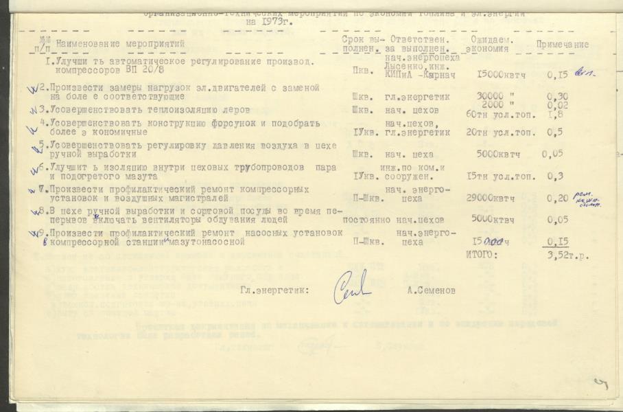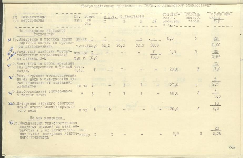 Fonds: "Līvānu stikls", akciju sabiedrība. Lieta: Līvānu stikla fabrikas organizatoriski-tehnisko pasākumu plāns 1973.gadam