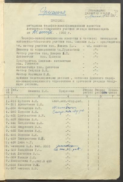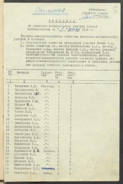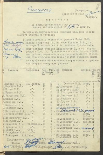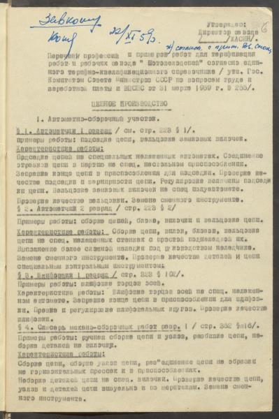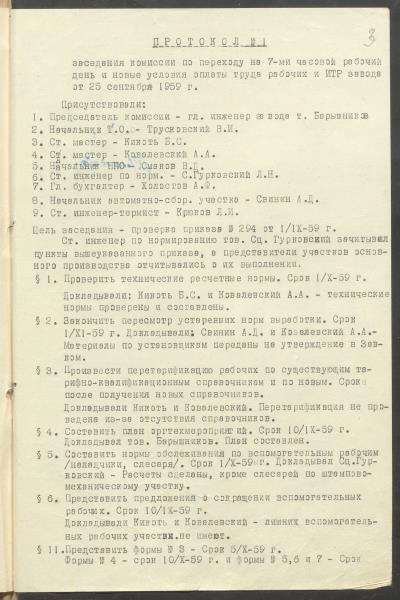 Fonds: "Daugavpils pievadķēžu rūpnīca", akciju sabiedrība. Lieta: Daugavpils motoveloķēžu rūpnīcas pārejas uz 7 stundu darba dienu komisijas protokoli, jaunie darba apmaksas noteikumi un materiāli pie tiem
