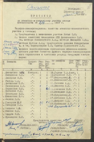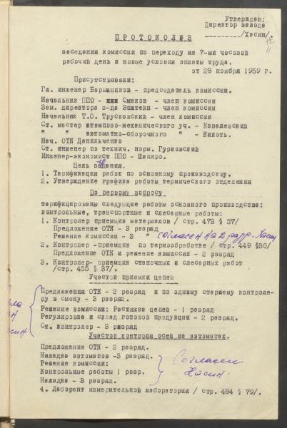Daugavpils motoveloķēžu rūpnīcas pārejas uz 7 stundu darba dienu komisijas protokoli, jaunie darba apmaksas noteikumi un materiāli pie tiem