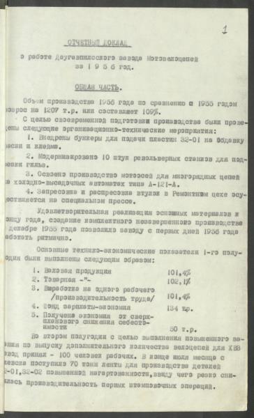 Fonds: "Daugavpils pievadķēžu rūpnīca", akciju sabiedrība. Lieta: Daugavpils motoveloķēžu rūpnīcas paskaidrojuma raksts pie 1956.gada atskaites