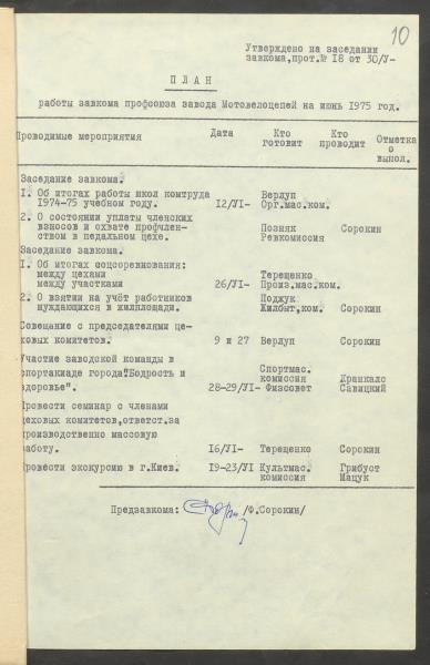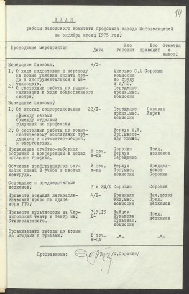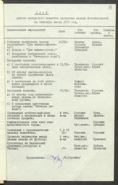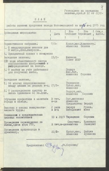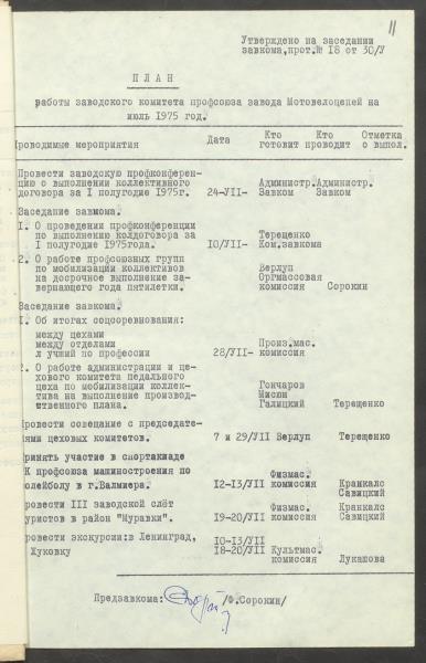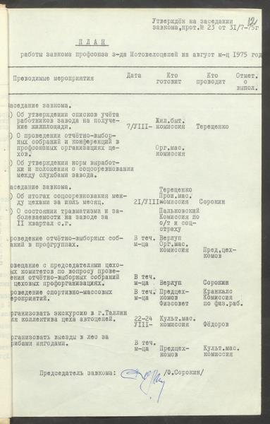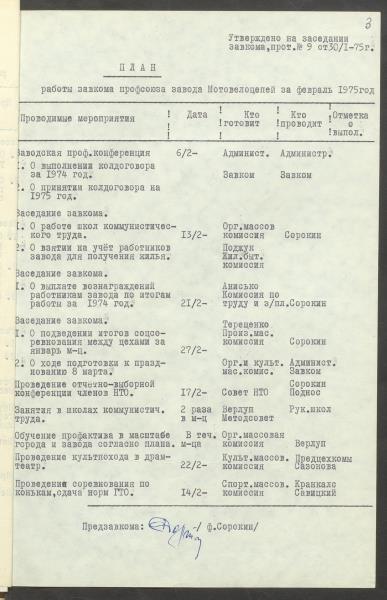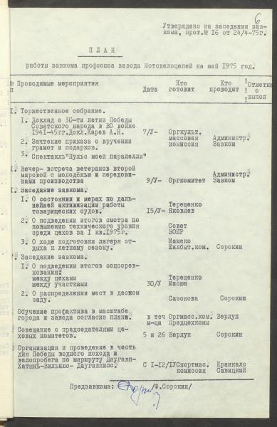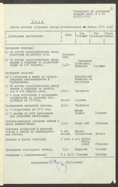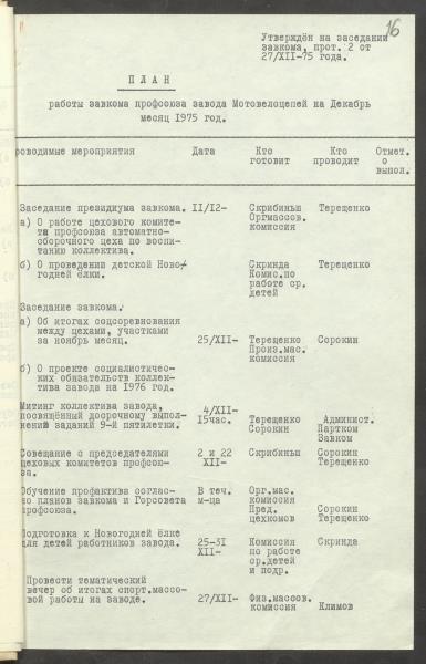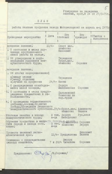 Fonds: "Daugavpils pievadķēžu rūpnīca", akciju sabiedrība. Lieta: Daugavpils motoveloķēžu rūpnīcas arodkomitejas darba plāni 1975.gadam