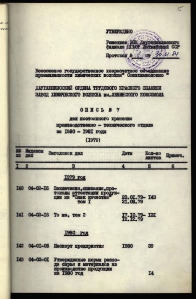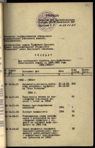 Fonds: Tolaram Fibers, akciju sabiedrība. Lieta: Ražošanas-tehniskā daļa