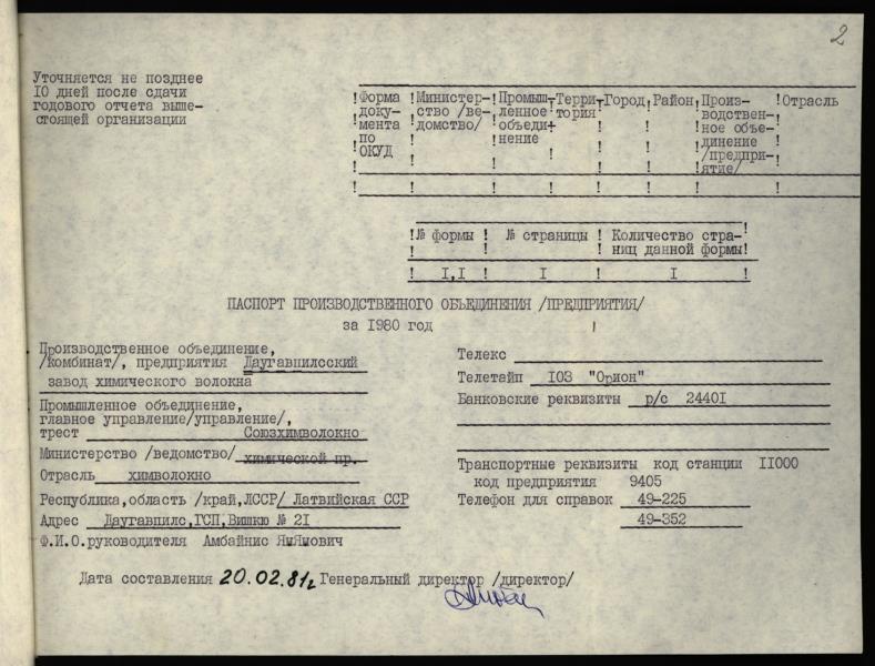 Fonds: "Tolaram Fibers", akciju sabiedrība. Lieta: Ar Darba Sarkanā karoga ordeni apbalvotās Ļeņina komjaunatnes vārdā nosauktās Daugavpils ķīmiskās šķiedras rūpnīcas pase