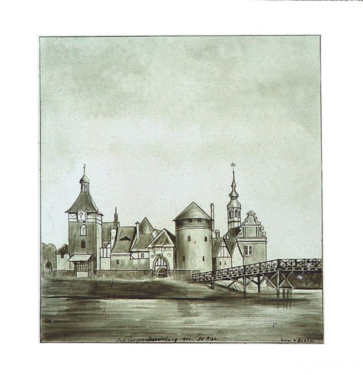 Jaunmoku muižas pils. Atklātņu kopiju fragments uz krāsns
