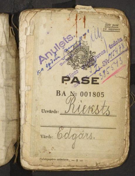 Rieksts Edgars. Jaunā parauga Latvijas iekšzemes pase, 1928-1933