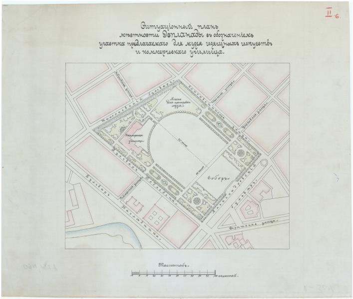Ситуационный план местности Эспланады с обозначением участка, предлагаемаго для музея изящных искусств и коммерческого училища