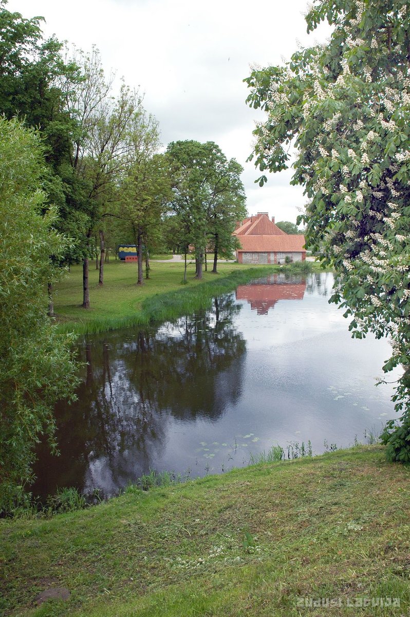 Jaunpils pils. Skats uz muižas dzirnavu ezeru