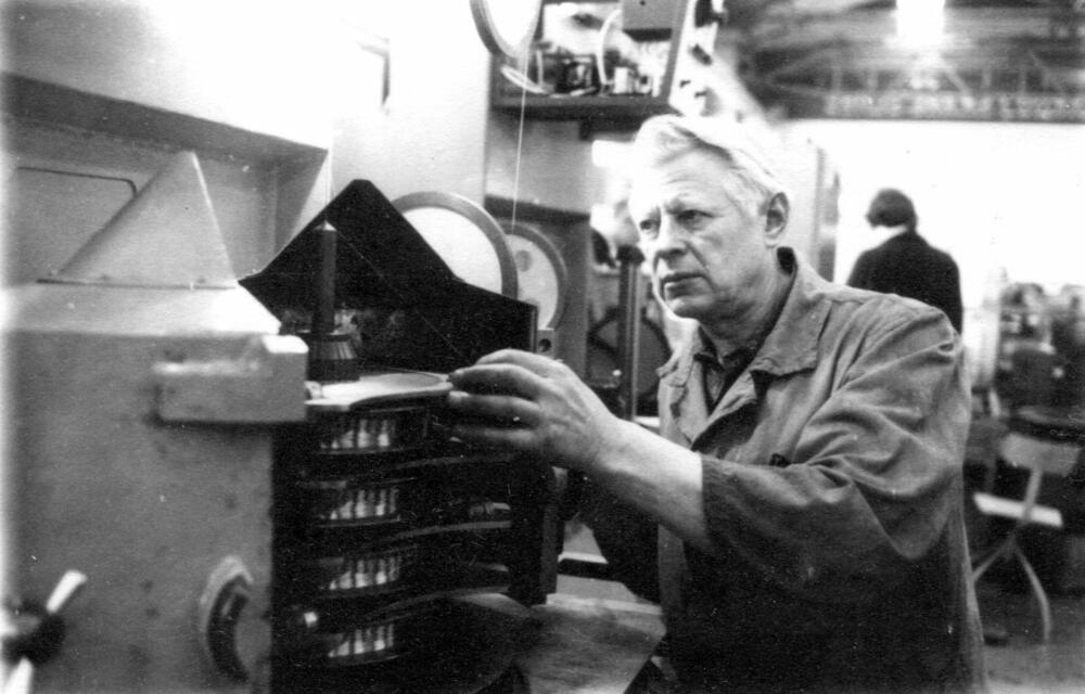 Rīgas autoelektroaparātu rūpnīcas mehāniskā ceha atslēdznieks, darba veterāns, ražošanas novators Fricis Celmais.