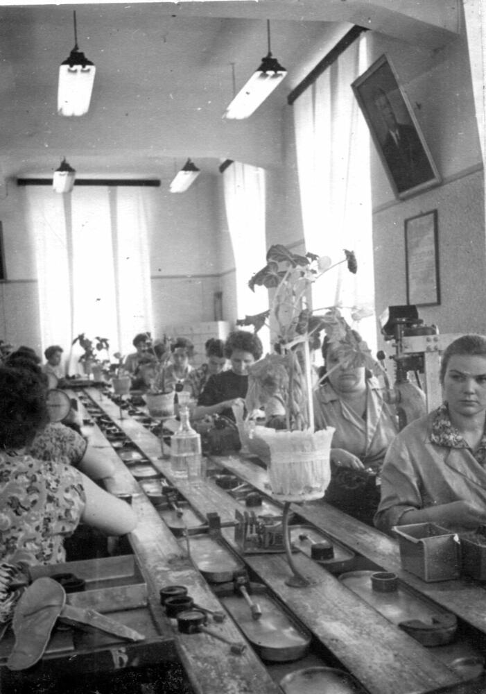 Rīgas autoelektroaparātu rūpnīca. Darba process pie konveijera vienā no uzņēmuma cehiem.
