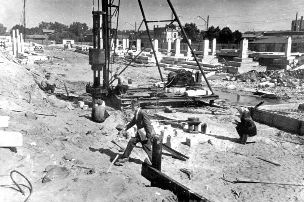 Rīgas autoelektroaparātu rūpnīcas būvlaukums. Jaunā ražošanas korpusa būvniecība.