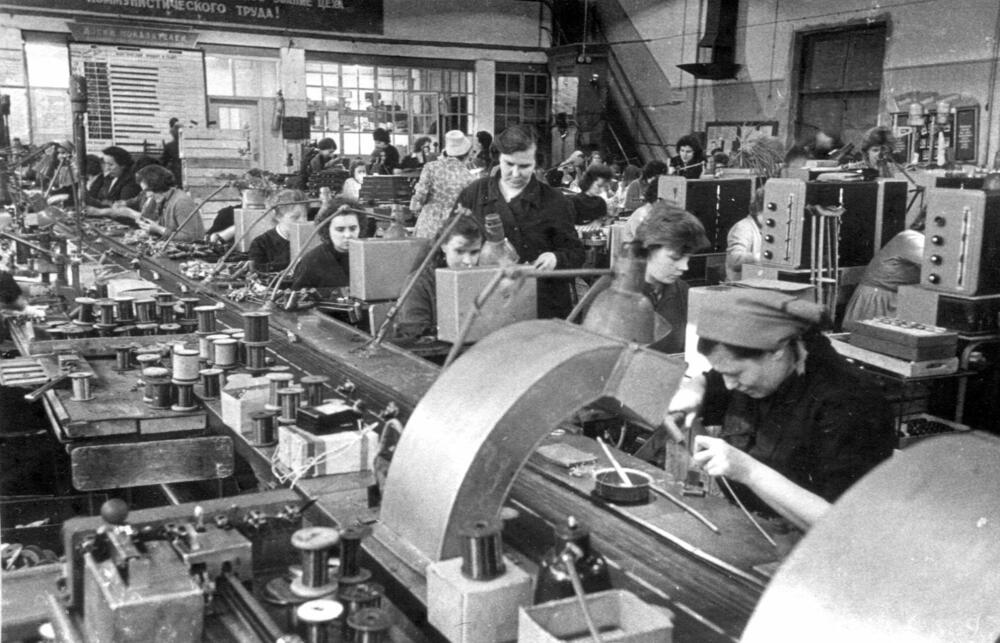 Rīgas autoelektroaparātu rūpnīca. Darba process montāžas cehā.