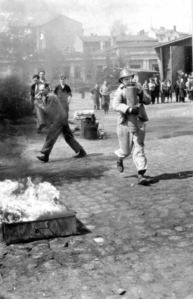 Apmācības ugunsdrošības jomā Rīgas autoelektroaparātu rūpnīcā.