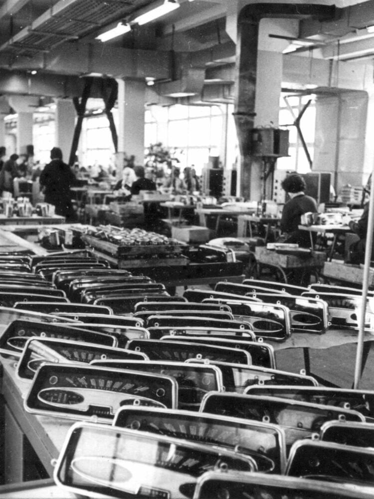 Rīgas autoelektroaparātu rūpnīcas produkcija - automašīnu vadības paneļi.