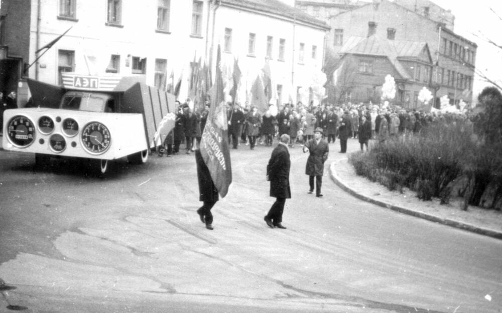 Rīgas autoelektroaparātu rūpnīcas kolektīvs Pirmā maija svētku demonstrācijā.