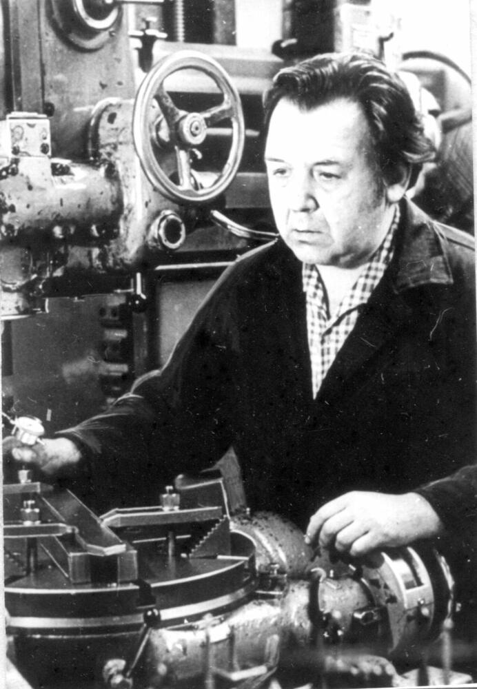 Rīgas autoelektroaparātu rūpnīcas instrumentālā ceha virpotājs, Latvijas PSR Augstākās Padomes deputāts Arnis Kārkliņš pie darba galda.