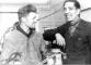 Rīgas autoelektroaparātu rūpnīcas metinātājs G. Šatalovs (no kreisās) un elektromehāniķis Miezītis uzņēmuma cehā.