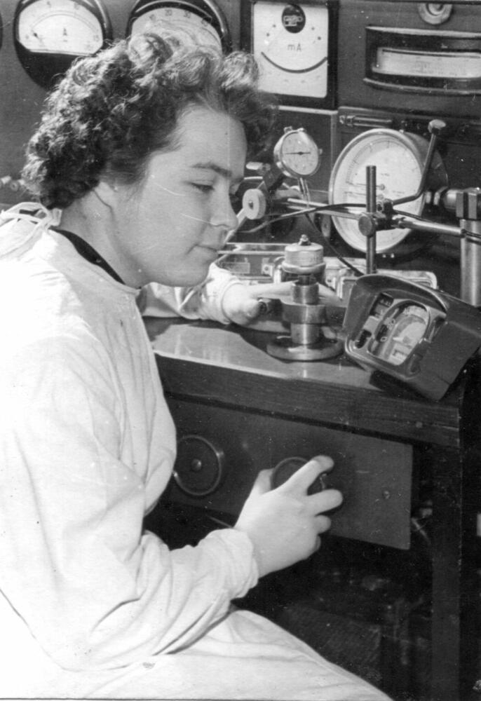 Rīgas autoelektroaparātu rūpnīcas darbiniece Alla Maksimova veic automašīnu vadības paneļu kvalitātes kontroli.