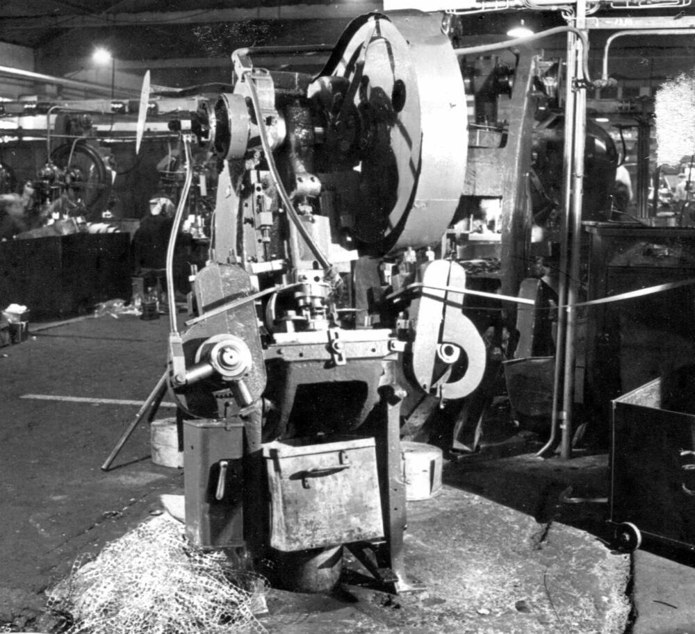 Preses iekārta Rīgas autoelektroaparātu rūpnīcas presēšanas cehā.