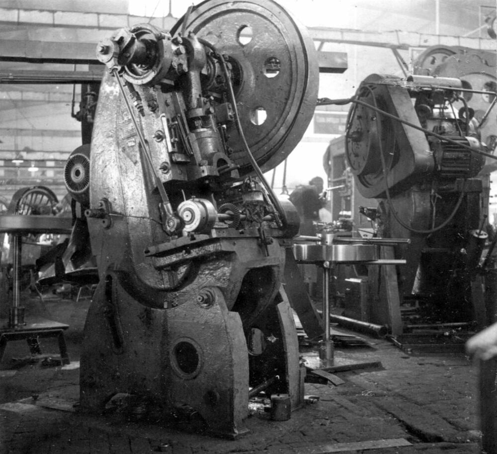 Preses darbgaldi Rīgas autoelektroaparātu rūpnīcas spiešanas un štancēšanas cehā.