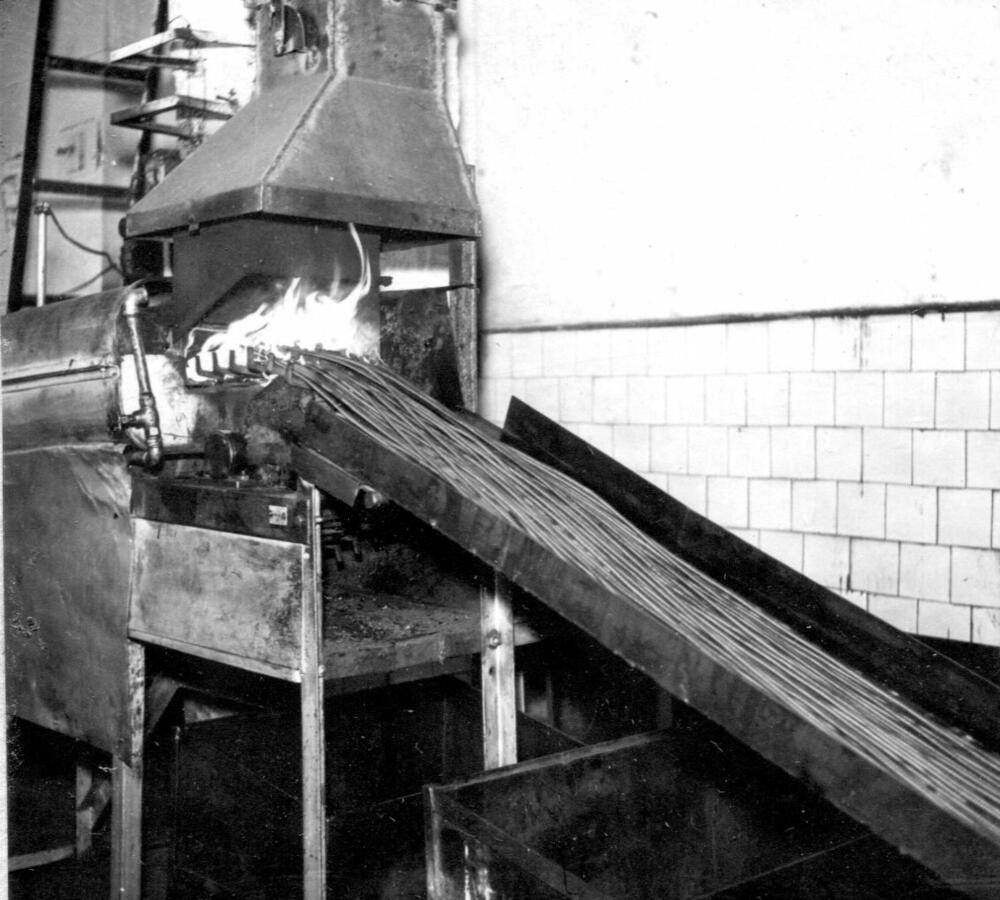 Rīgas autoelektroaparātu rūpnīcas liešanas cehs. Lokano vārpstu apstrādes iekārta.