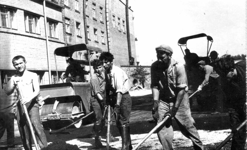 Rīgas autoelektroaparātu rūpnīcas teritorijas labiekārtošana - asfaltēšanas darbi.
