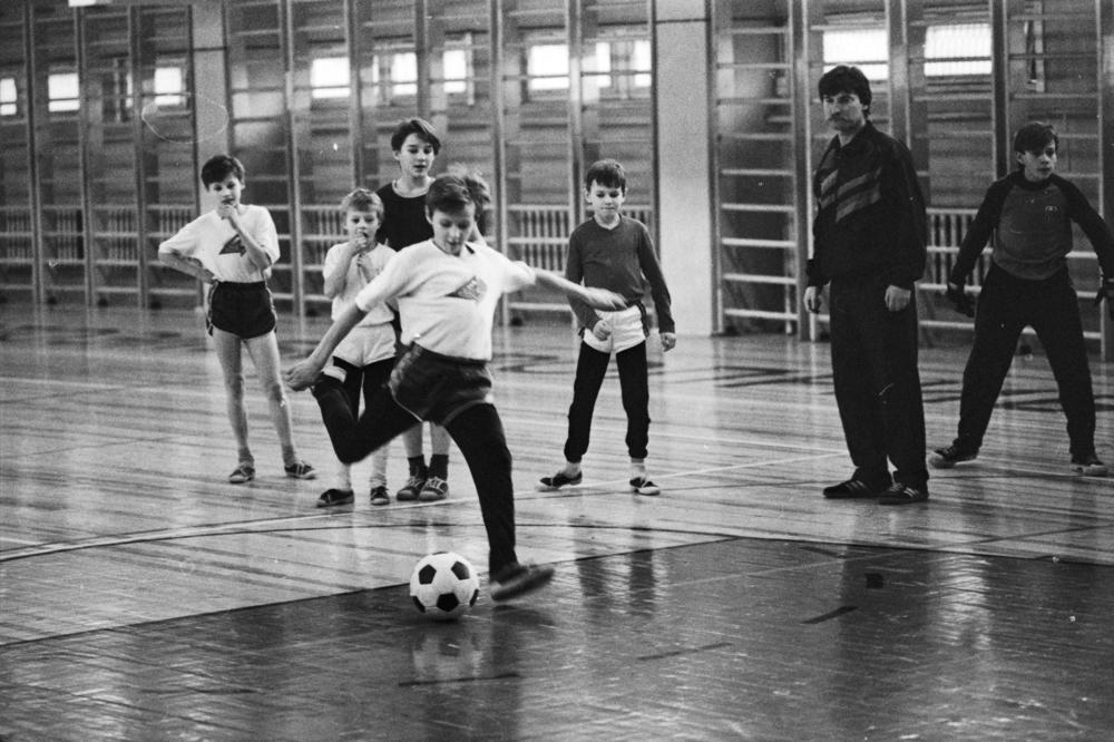 Rīgas autoelektroaparātu rūpnīcas sporta kompleksā rit nodarbības jauniešiem futbolā.