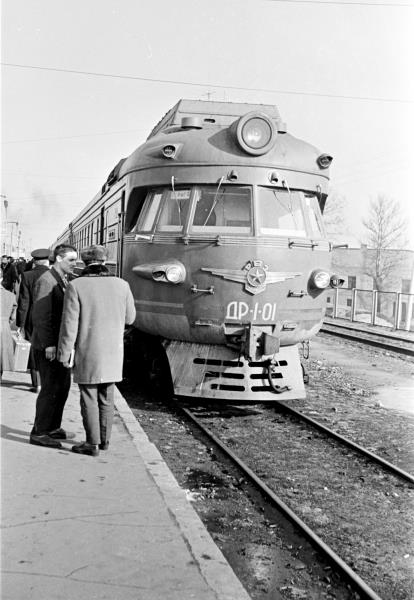 Rīgas vagonu rūpnīcas dīzeļvilciens DR-1-01, kas kursē maršrutā „Rīga-Daugavpils”, Rīgas stacijā.